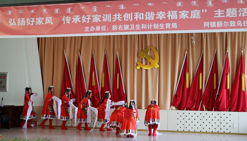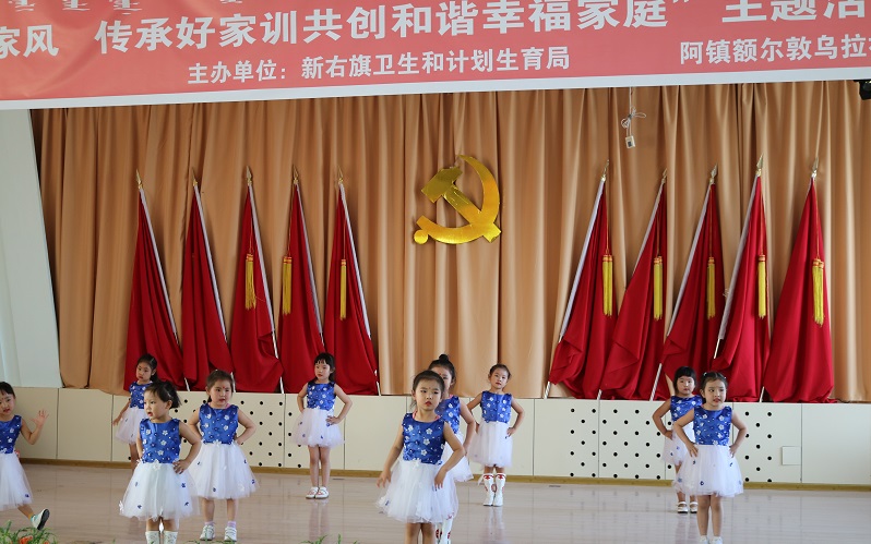 活動中,新巴爾虎右旗計生協會舉辦了家風家訓講座,表彰獎勵了6戶“北疆幸福家庭”標兵示范戶,救助了5名貧困母親和5名貧困女孩,并為他們敬獻了鮮花。隨后,社區文化站的志愿者及新巴爾虎右旗第二幼兒園的小朋友們帶來了精彩的文藝演出。