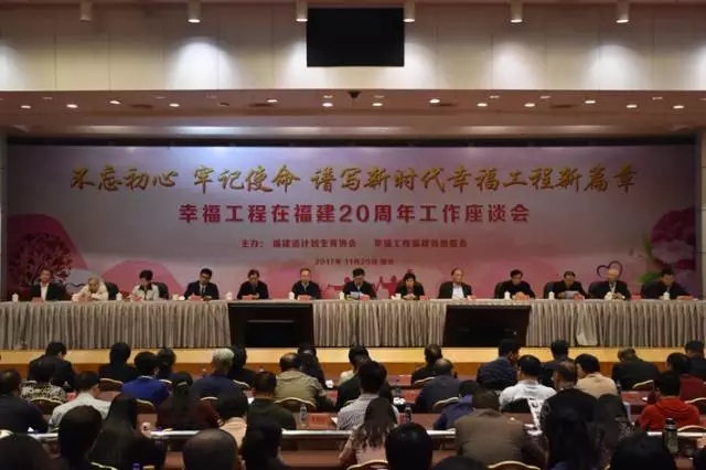 幫助困境母親,建設幸福家庭11月29日,幸福工程在福建20周年工作座談會在福州福建會堂隆重舉行。我會趙本志副秘書長出席并講話。福建省委常委、宣傳部長高翔出席并講話,省人大常委會副主任、幸福工程省組委會名譽主任陳樺,省政協副主席薛衛民,省人大常委會原副主任、省計生協會會長黃賢模,省政協原副主席、幸福工程省組委會顧問潘心城,省高級人民法院原院長、省計生協會常務副會長陳旭,省衛生計生委黨組書記、主任朱淑芳,中國計生協會副會長謝啟增,省計生協會常務副會長、幸福工程省組委會主任陳光普等領導出席座談會。省衛生計生委副主任、省計生協會常務專職副會長、幸福工程省組委會常務副主任阮詩瑋主持座談會。
