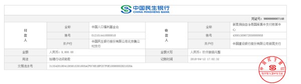 中國人口福利基金會拾穗行動項目2018年第二期支助款撥付
