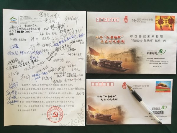 中國人口福利基金會部分員工在中國郵政未來郵局合影