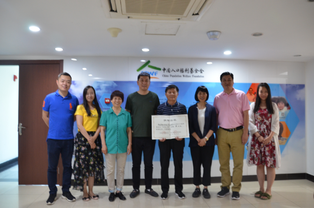 幫助困境母親,建設幸福家庭2018年6月1日上午,河南省計劃生育協會陳鋒部長、虞城縣計劃生育協會會長付本坤、虞城縣計劃生育協會副會長黃輝一行來到中國人口福利基金會,匯報虞城縣幸福工程工作進展與取得的碩果,帶來受助母親的聯名感謝信與捐贈款1萬元。中國人口福利基金會秘書長助理牛艷平、國內項目部部長劉麗容等出席會議,并代表中國人口福利基金會、幸福工程工作組感謝貧困母親的愛心與美好祝福。