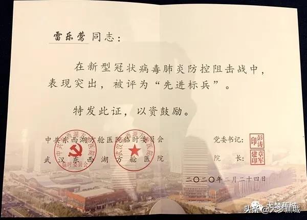 2月4日,武漢疫情爆發后,經過兩次主動請纓,雷樂鶯成了寧德市第二批援鄂醫療隊隊員,她“拋下”剛滿一周的女兒,匆匆忙忙告別父母和愛人后,如愿坐上了飛往武漢的航班。“誰不怕死呢?但在疫情面前,總要有人挺身而出。我們家以前很困難,都是靠黨的好政策度過難關。現在國家有困難,作為醫護人員的我,更應該站出來,為疫情防控盡一份力!”雷樂鶯矢志不渝守護祖國。
