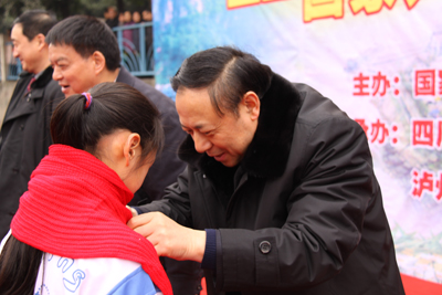 四川省人民政府副省長陳文華為女孩佩戴幸福圍巾