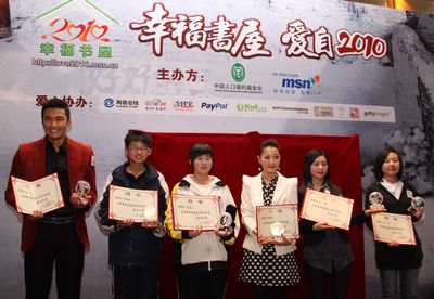2010 年 3 月 23 日 下午,一項由我會和知名網站 MSN 中國聯合發起,旨在改善貧困地區農民讀書現狀,豐富農村精神文化生活的 “幸福書屋,愛自 2010 ” 大型網絡慈善活動在北京啟動。中宣部宣傳局局長董俊山、新聞出版署法規司于慈珂司長、中國文聯研究室主任趙衛東、中央人民廣播電臺發展研究中心副主任萬梅、中國志愿服務基金會管理部主任鄧麗娟、中國人口出版社副總編邱立、國家人口計生委宣教司新聞管理處楊志媛、中國人口福利基金會秘書長楊文莊、副秘書長藍野, MSN 中文網總編劉書及來自各大傳媒記者 100 余人出席了啟動儀式 。