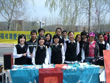 華北電力大學外國語學院的同學們在校園里搞起"幸福書屋"募捐活動