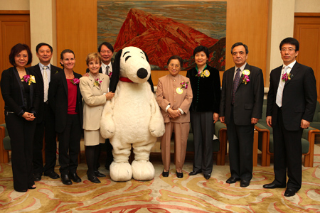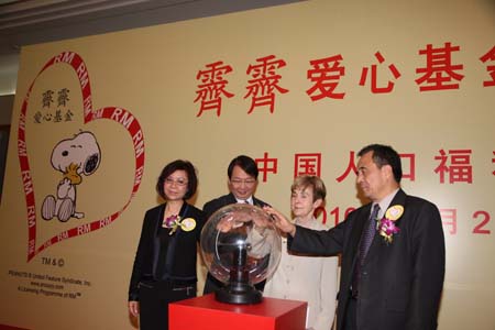 啟動儀式前,全國人大常委會副委員長何魯麗、國家人口計生委副主任崔麗、中國人口福利基金會理事長趙炳禮等領(lǐng)導(dǎo)會見了史努比形象創(chuàng)始人舒爾茨的夫人。