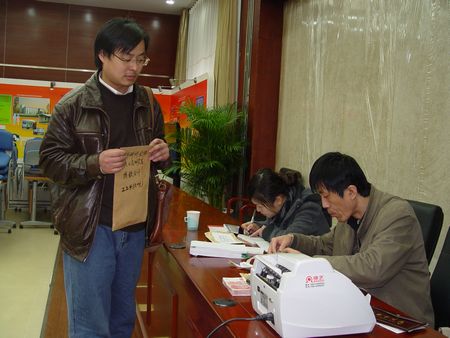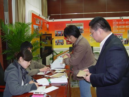 4月中旬至下旬國家人口計生委會議室內(nèi)涌動著愛的暖流。委領(lǐng)導(dǎo)帶頭,各廳司局、各直屬單位紛紛向玉樹地震捐款,共計捐贈善款209075元,圖為中國人口福利基金會財務(wù)人員為捐款人開“情系玉樹”捐款活動收據(jù)。