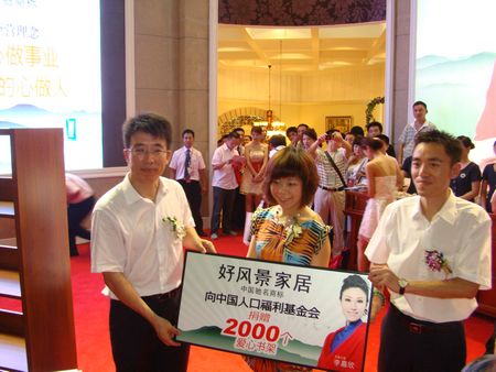 此次活動上好風景家居為“幸福書屋 愛自2010”捐贈了2000個配套書架,王自松總經理并于7月2日捐贈了10所“書屋”,3萬元整。