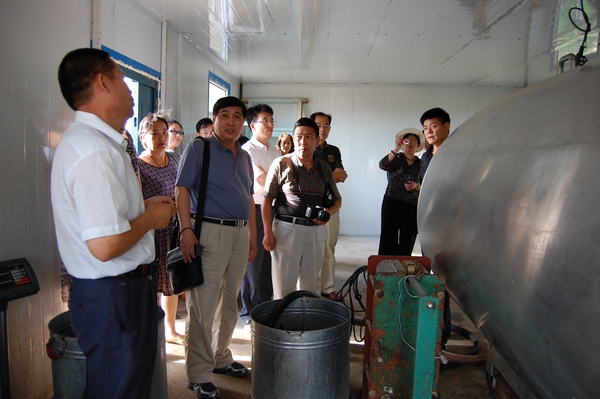 參觀團結村牛奶經合社通過幸福工程項目資金建設的收奶廳