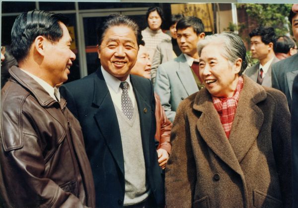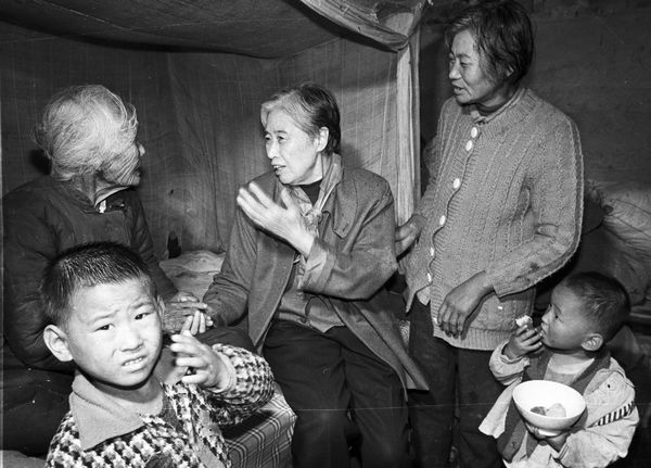 4 1995年10月13日,王光美主任考察陜西省大荔縣魯安鄉豫安村時與王尚英老人交談
