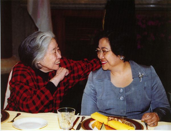 9 2002年3月,在釣魚臺國賓館與來訪的印尼總統梅加瓦蒂親切會面