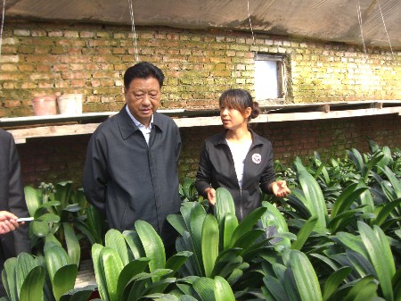 王忠禹會長親切詢問君子蘭花卉經營戶李娜的生產生活情況