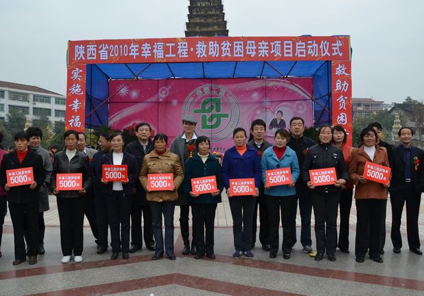 幫助困境母親,建設幸福家庭11 月 16 日上午,陜西省 2010 年幸福工程項目啟動儀式在陜西省漢中市洋縣舉行。中國人口福利基金會副理事長兼秘書長、幸福工程全國組委會辦公室主任楊文莊,陜西省人口計生委副主任陳昭,陜西省計劃生育協會秘書長周虎林、漢中市人口計生局局長李榮清,洋縣縣委副書記杜家才等領導,中國人口福利基金會理事、幸福工程形象代言人馬艷麗出席項目啟動儀式。李榮清擔任啟動儀式主持。