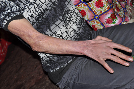 阿里木.艾買(mǎi)在三歲時(shí)就是掉入炕邊的熱鍋中,導(dǎo)致右手和肘關(guān)節(jié)嚴(yán)重?fù)p害