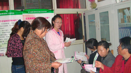 工作人員向育齡群眾進(jìn)行乳腺健康宣傳教育