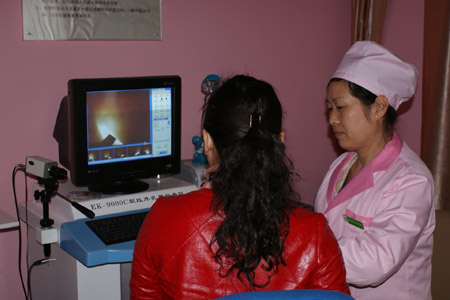 白潔是金湖、淮陰兩個縣區(qū)項目點的負(fù)責(zé)人,每周奔波于相隔一百多公里的兩地之間,有時駐站,有時下村,有時進(jìn)廠,是個大忙人,筆者預(yù)約了幾次才在淮陰區(qū)堵到她。“您好,您是王營鎮(zhèn)營東村的李大姐吧,來請坐……”白潔一邊熱情地招呼著預(yù)約就診的群眾,一邊麻利地采集著基本信息,發(fā)放宣傳資料,介紹乳腺健康知識,并帶著李大姐進(jìn)入初步手診、儀器篩查、醫(yī)生綜合診斷、物理治療等流程,忙得像個陀螺。“平均每天自發(fā)來就診的有四五十人,趕上單位組織體檢的就更多,我們正常早上八點多上班,到下午六點鐘才能收工,晚上回到宿舍后還要對疑似對象電話隨訪,提醒她們及時到大醫(yī)院確診,有些還要心理疏導(dǎo),平時每天工作不下十一個鐘頭。累是累點,但忙得很有成就感” 剛聊上幾句,采訪就被陸續(xù)門診的群眾打斷了。小白只是淮安市四個項目點上30多名技術(shù)人員的一個縮影,她們之中有60%的人是中國人口福利基金會來淮援助的醫(yī)務(wù)人員,有的遠(yuǎn)離親人近千公里,一年也難得回家一趟。精湛的技藝、無私的奉獻(xiàn)、親情的呵護(hù),也為她們在當(dāng)?shù)厝罕娭汹A得了“幸福使者”的美譽。