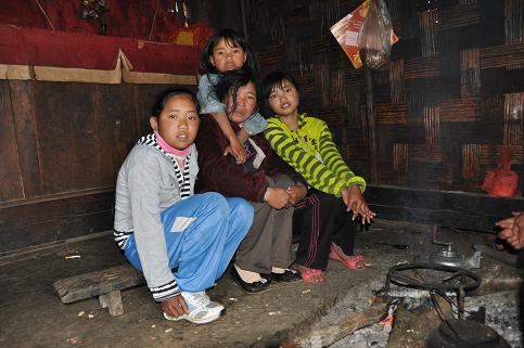 鎮領導帶著我們走進一座木屋,屋子里點了一堆火,有個小姑娘坐在火堆旁烤火。我在屋里繞了一圈,房間里陰冷陰冷的,墻邊對 頭放了兩張舊木床 ,床上堆了件沒罩被面的被子,幾件衣服零亂地掛在繩子上。幾縷陽光透過用竹子編成的墻,讓陰冷昏暗的屋子有了一點光亮和溫暖。不一會兒,一位 30 多歲的中年婦女走了進來,這大概就是女主人了。鎮領導招呼她坐下和我們聊一聊。