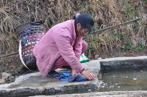 她叫余福艷,今年 36 歲,有三個女兒(栗粟族一家可生三個孩子)。大女兒叫余艷聰,今年 15 歲,讀初三。由于學校離家較遠所以平時寄宿,每周末回家。二女兒余艷仙, 13 歲,上初二,和姐姐在一所學校讀書。小女兒余艷嬌,今年九歲,在寨子里讀小學三年級?,F在國家實行九年義務教育,孩子們的學費都免了,但生活費還要自己承擔,小女兒在家吃飯每月的生活費會少一些,兩個讀初中的女兒每周回來每人都向母親要 30-40 元錢的食宿費,一個學期每人約 680 元錢,兩人需要 1360 元,一個學年就是 2720 元。這對生活在城市的人來講也許算不上什么,但對這個只種了 4 畝山地,靠吃政府救濟的家庭來說卻是一筆不小的開支。用這僅有的 4 畝山地,她們種了包谷、土豆和草果(一種調味品),由于土地貧脊,每年打的糧食也就有 500 多斤,只夠全家人吃 4 個多月,政府每年給 150 斤的救濟糧,剩下的都要花錢去買。種的草果也只能賣上 1000 多元錢。農閑時,大人們便會去打零工,每天能有 20 多元錢的收入,但這樣的日子每年也就只有一個月的時間。加上政府給的 1000 元低保費,全家每年的收入只有三、四千元,這已經是最好的年份了。聊天的時候得知她家還有幾十畝荒山,可以用來種核桃樹、紅油茶樹等經濟型作物,每畝只要投入 7000 多元錢, 4 年后每年就可收入 3-4 萬元,但是因為沒有錢,也只能是一種夢想。