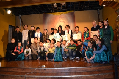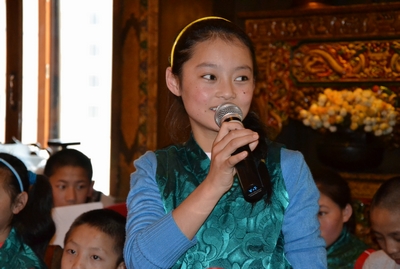 則熱福利院的孩子們通過啞劇《我們的一天》,生動地展示了他們在北京一天的生活、學習狀況,贏來陣陣歡笑和掌聲。大旗網CEO周春蘭、一汽豐田華北區銷售總監李湘等志愿者也分享了志愿者的心靈感悟。福利院的孩子們紛紛介紹自己,同時表達對活佛、志愿者和好心人的深摯謝意。茶話會還推出了在中國人口福利基金會網店開展的“添磚加瓦”工程,鼓勵愛心人士通過購買價值1元的虛擬“愛心磚”,為玉樹則熱福利院的重建奉獻愛心。