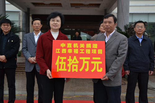 石穎波代表中央直屬機關(guān)向江西移交捐贈牌