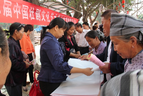 幫助困境母親,建設幸福家庭4日25日,是廣西百色田林縣第二屆中國壯劇藝術節(jié)開幕后的笫三天,一清早,田林縣人民廣場就聚集著數(shù)千名群眾前來準備觀看壯劇展演。田林縣人口計生局抓住人多聚集的有利時機,組織縣計生協(xié)、本局各股、室、站以及樂里鎮(zhèn)計生辦全體干部職工在人民廣場擺攤設點,開展計生宣傳服務活動。活動當天,共向群眾發(fā)放誠信計生服務指南、幸福工程宣傳小冊子、優(yōu)生優(yōu)育知識畫冊等共3500份;免費向群眾贈計生宣傳環(huán)保袋1200個,免費向群眾發(fā)放避孕藥(膜)650盒,計生宣傳小折扇450把;同時還免費為群眾開展量血壓等健康檢查68人次。形式多樣的宣傳服務活動,吸引了數(shù)千群眾參與,圖為活動現(xiàn)場。(廣西田林縣人口計生局:戴天敏 農(nóng)欣華攝影報道)