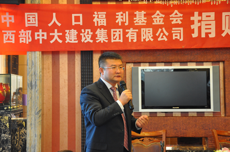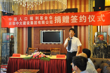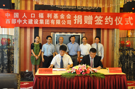 幫助困境母親,建設幸福家庭2011年6月17日,西部中大建設集團有限公司向中國人口福利基金會捐款人民幣500萬元,支持創建幸福家庭活動,捐贈簽約儀式在北京舉行。