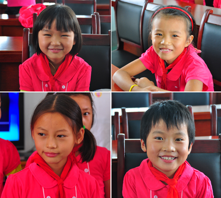 穿上紅裙子的孩子們笑逐顏開