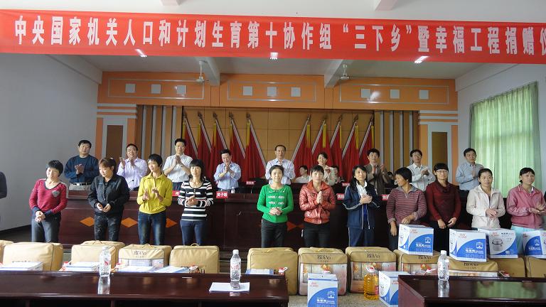 幫助困境母親,建設幸福家庭10 月 26 日 ,來自由國務院國資委各部門領導組成的中央國家機關計劃生育第十協作組一行 12 人赴我市南靖縣“三下鄉”向幸福工程捐贈并考察了項目實施情況。福建省計生協會常務專職副會長黃子曦和副秘書長周仁金等領導專程陪同。