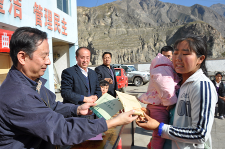 隨后,藍野副秘書長一行又趕往舟曲縣,為那里的9名患兒發放了救助金。