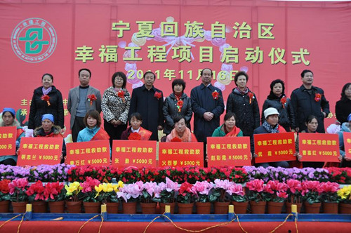 由史玉柱先生捐贈善款設立的彭陽縣“幸福工程”項目點于11月16日在新集鄉舉行了項目啟動儀式。中國人口福利基金會國內發展部副部長劉麗容,寧夏回族自治區計生委副主任白秀榮,計生協專職副會長兼秘書長張磊、副秘書長伊加強,固原市副市長田治富,彭陽縣委副書記李世明等出席了啟動儀式。