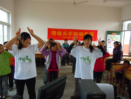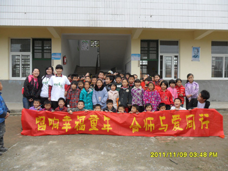 幫助困境母親,建設(shè)幸福家庭2011年11月初,安徽農(nóng)業(yè)大學(xué)、合肥學(xué)院、合肥師范學(xué)院三所高校志愿者先后開(kāi)展“幸福唱響 音樂(lè)教室”志愿者活動(dòng),到合肥市長(zhǎng)豐縣20所受助小學(xué)進(jìn)行考察、評(píng)估、支教、互動(dòng)。
