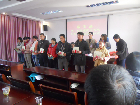 幫助困境母親,建設幸福家庭12月16日,漢中市略陽縣隆重舉行“汶川地震重災區大病兒童救助項目”救助款發放儀式。參加儀式的有縣委、人大、政府、政協分管領導,縣人口計生局、計生協會領導,有關鎮計生干部以及全縣29名受助兒童及家長。該救助項目經過調查摸底、嚴格審核、公開公示等過程,共為大病患兒捐贈203802元救助金。