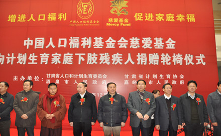 幫助困境母親,建設(shè)幸福家庭12月29日上午 “中國(guó)人口福利基金會(huì)-慈愛(ài)基金” 向“關(guān)愛(ài)下肢殘疾人活動(dòng)”向酒泉市捐贈(zèng)輪椅儀式在酒泉市隆重舉行。