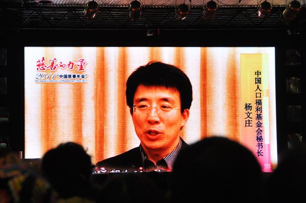 我會楊文莊秘書長在開場VCR寄語中表示:我希望在2012年,社會各界對公益慈善界應當更加有信心,我們社會慈善人能更加給力更加努力,把我們的事業做的更好,我相信中國慈善的明天會更好!中國慈善事業會更好!