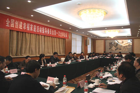 2012年2月7日,全國創建幸福家庭活動指導委員會第一次全體會議在京召開。第十屆全國政協副主席、中國人口福利基金會會長王忠禹,國家人口計生委黨組書記、主任王俠講話,國家人口計生委副主任崔麗主持,中央宣傳部副部長申維辰,共青團中央書記處書記汪鴻雁,全國婦聯書記處書記張靜,中國紅十字總會副會長王海京,中國計劃生育協會黨組書記、常務副會長楊玉學,中國人口福利基金會理事長趙炳禮出席。