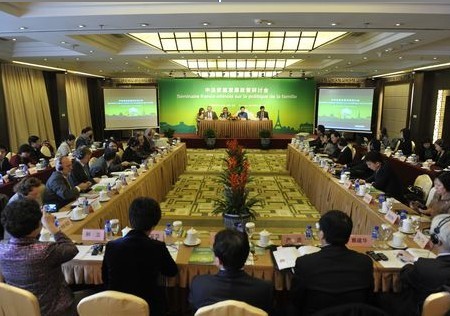 3月26日至27日,由中國國家人口和計劃生育委員會和法國駐華大使館主辦,中國人口與發展研究中心、中國人口福利基金會和法國國際衛生與社會保障合作署承辦的中法家庭發展政策研討會在北京西苑飯店舉行。來自中法兩國政府部門和學術機構的代表,聯合國人口基金、聯合國兒童基金、德國國際合作機構等相關機構駐華代表處的代表共計40余人參加了此次研討會。會議上,中法雙方就中法家庭演變和家庭政策的現狀和發展趨勢、家庭政策框架下的養老、0—3歲兒童的早期發展與留守兒童問題三個主題展開了交流和討論。會議期間,雙方代表團還考察了北京市西城區敬老院和托兒所。中國人口福利基金會秘書長楊文莊與法國國際衛生與社會保障合作署中國項目主管段路易合作主持了本次會議的第一主題。國際合作部與社會聯絡部參加了此次會議的旁聽。