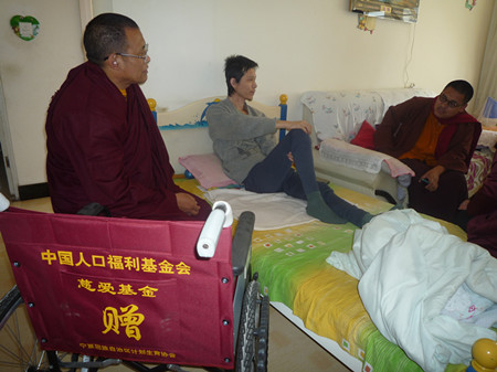 慈愛基金發起人加措、嘉樣到困難家庭發放輪椅剪影