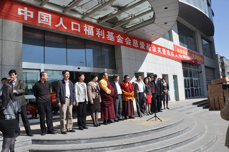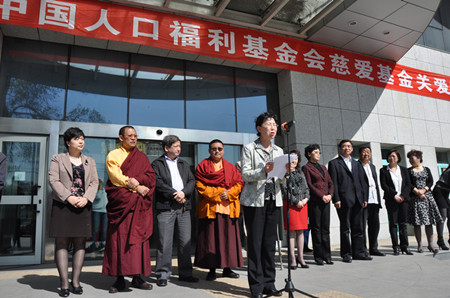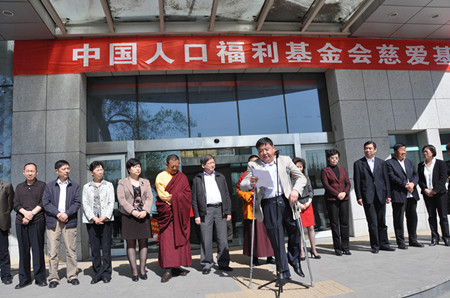 郭京茹在致辭中介紹,中國人口福利基金會成立25年來,始終堅持“增進人口福利,促進家庭幸福”的宗旨,廣泛募集善款,深入開展了創(chuàng)建幸福家庭活動以及幸福工程、幸福微笑、幸福書屋、幸福圍巾、幸福家園、幸福在他鄉(xiāng)、家庭健康促進等一系列旨在消除貧困、促進平等,改善弱勢群體和貧困農(nóng)村農(nóng)民生產(chǎn)、生活、生育狀況的救助項目和公益慈善活動,贏得了群眾認可和社會好評。多次被民政部授予“全國先進社會組織”榮譽稱號。在《2011福布斯中國最透明的慈善基金會榜單》中名列第九,全國性公募基金會第四;位列民政部中民慈善捐助信息中心《中國慈善透明報告(2011)》年度透明指數(shù)榜單第三,公募基金會第一。加措、嘉樣、延佛、頓珠四位宗教人士積極響應(yīng)中共中央統(tǒng)戰(zhàn)部、國家發(fā)展和改革委員會、國家宗教事務(wù)局等六部委《關(guān)于鼓勵和規(guī)范宗教界從事公益慈善活動的意見》精神,倡議并發(fā)起了中國人口福利基金會慈愛基金。去年12月3日,“慈愛基金”在北京人民大會堂舉行了隆重的啟動儀式,第十屆全國政協(xié)副主席、中國人口福利基金會會長王忠禹,國家人口計生委副主任崔麗,中國人口福利基金會理事長趙炳禮、副理事長兼秘書長楊文莊等領(lǐng)導(dǎo)和相關(guān)部門負責人出席了啟動儀式。“慈愛基金”成立以來,充分發(fā)揮和動員信教群眾和廣大愛心人士奉獻愛心、服務(wù)社會。為青海玉樹地震災(zāi)區(qū)兒童募捐書包28843個,文具15767套,價值300多萬元。為西部貧困地區(qū)下肢殘疾人募捐價值500萬元的殘疾人專用輪椅1萬輛。今年,中國人口福利基金會慈愛基金為甘肅省、寧夏回族自治區(qū)、新疆維吾爾自治區(qū)、西藏自治區(qū)的困難殘疾人家庭發(fā)放1萬輛輪椅,價值500萬元。此次活動為新疆維吾爾自治區(qū)3000個困難殘疾人家庭捐贈3000輛輪椅。
