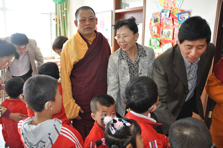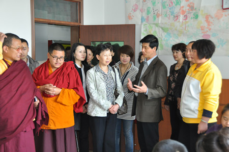 中國人口福利基金會秘書長助理郭京茹、社會聯絡部部長宋宏云及慈愛基金發起人嘉樣、加措與新疆殘聯副理事長胡志斌親切交談