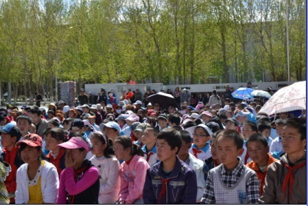 5月8日,在青海省人口計生委、計生協的協助之下,中國人口福利基金會在青海省格爾木市中心廣場舉行了“幸福書屋——2012有愛世界不會終結”美特斯邦威服飾有限公司100萬元服裝捐贈儀式。一共為格爾木市十一所學校的捐贈了7350件價值100萬元的衣服。