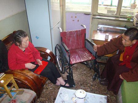 慈愛基金發起人加措入戶為殘疾人發放輪椅剪影