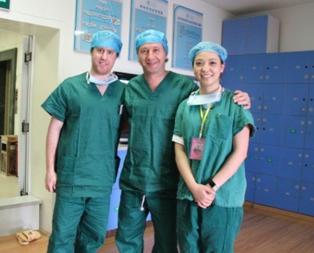 美國微笑聯盟醫療志愿者Isaac Rozen Fuller 和Ariel Rozen 與手術室醫護人員合影