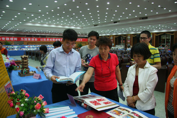 5月25日夜,我會副理事長兼秘書長楊文莊來到精心布設的會場,對展示出的“新時代社區” 、“新概念家庭”的各類精美作品、照片贊不絕口,饒有興致的聽取基層工作人員介紹創建活動開展情況以及展品收集制作過程中的感人故事,并同市區領導及工作人員合影留念。