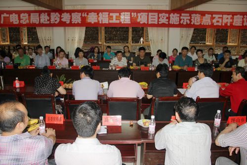 幫助困境母親,建設幸福家庭6月26日,國家廣電總局赴貴州考察"幸福工程"項目實施座談會在貴州省銅仁市石阡縣堯上村召開。我會副秘書長葛振江,國家廣電總局機關黨委副書記瞿家茂,貴州省計生協項目部副部長楊熙,銅仁市計生協執行副會長李瓊、秘書長崔少明,石阡縣縣委副書記黃忠等領導以及來自國家廣電總局各司局、直屬單位捐贈代表34人以及受助母親代表參加座談。會議由李瓊主持。