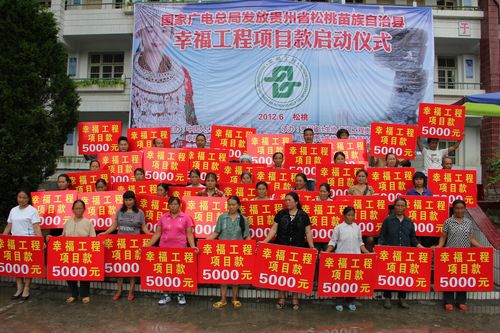 幫助困境母親,建設幸福家庭6月28日,國家廣電總局捐贈貴州省松桃縣"幸福工程"項目啟動儀式在貴州省松桃縣彭心潮小學舉行。我會副秘書長葛振江,國家廣電總局機關黨委副書記瞿家茂,貴州省計生協秘書長劉體輝、項目部副部長楊熙,銅仁市政協副主席王能軍、計生協執行副會長李瓊、秘書長崔少明,松桃縣原縣人大常委會主任、縣計生協會長麻紹平等領導及廣電總局捐贈代表、受助母親代表、留守兒童代表參加啟動儀式。