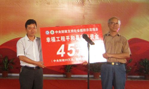幫助困境母親,建設(shè)幸福家庭5月31日晚,中央財政支持社會組織參與社會服務(wù)"幸福工程社會工作服務(wù)示范項目"平和縣、南靖縣項目啟動儀式在福建省漳州市平和縣舉行。今年年初,中央財政首次劃撥資金2億元支持社會組織參與社會服務(wù),中國人口福利基金會"幸福工程-救助貧困母親行動"憑借先進(jìn)的運(yùn)作模式、規(guī)范的項目管理、顯著的救助成效獲得中央財政資金200萬元,分別投放到內(nèi)蒙、新疆、福建三個省的六個縣開展貧困母親救助項目。