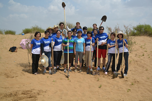 幫助困境母親,建設幸福家庭2012年6月25日-27日,由愛生雅旗下衛生用品北亞和所屬全日美公司中國區域的員工、分銷商以及供應商代表共17人遠赴寧夏回族自治區靈武市,舉辦“愛生雅治沙造林”公益活動。此次活動是愛生雅集團與全日美公司首次聯合參與的集體公益活動。