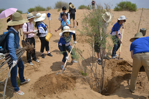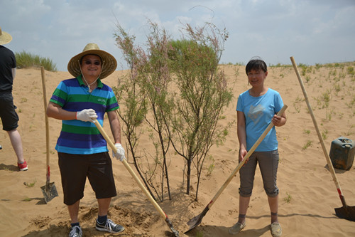 在沙地植樹過程中,顧女士親自示范。經過艱苦的勞動,在我們愛生雅及全日美同事的攜手努力下,總共種下幾十顆樹苗。望著那一個個1.5米深的沙地植樹坑,想到未來只有50%不到的樹木成活率,我們不禁感嘆在這種環境下植樹的不易,對于公司提出的可持續發展戰略有了更深刻的認識。