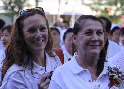 圖1:趙炳禮理事長(zhǎng)、孫士彬副省長(zhǎng)和芬克隊(duì)長(zhǎng)向中外志愿者、工作人員致致以崇高的敬意和感謝!