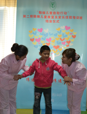 幫助困境母親,建設幸福家庭2011年12月10日,中國人口福利基金會“腦癱兒童救助行動”第二期腦癱兒童康復及家長技能培訓班結業儀式在上海保康門診部舉行。